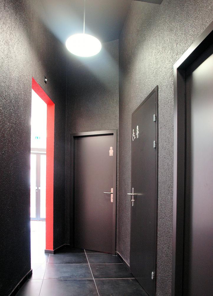 À l'étage, une salle de société est ouverte sur la salle polyvalente, permettant une extension de celle-ci.