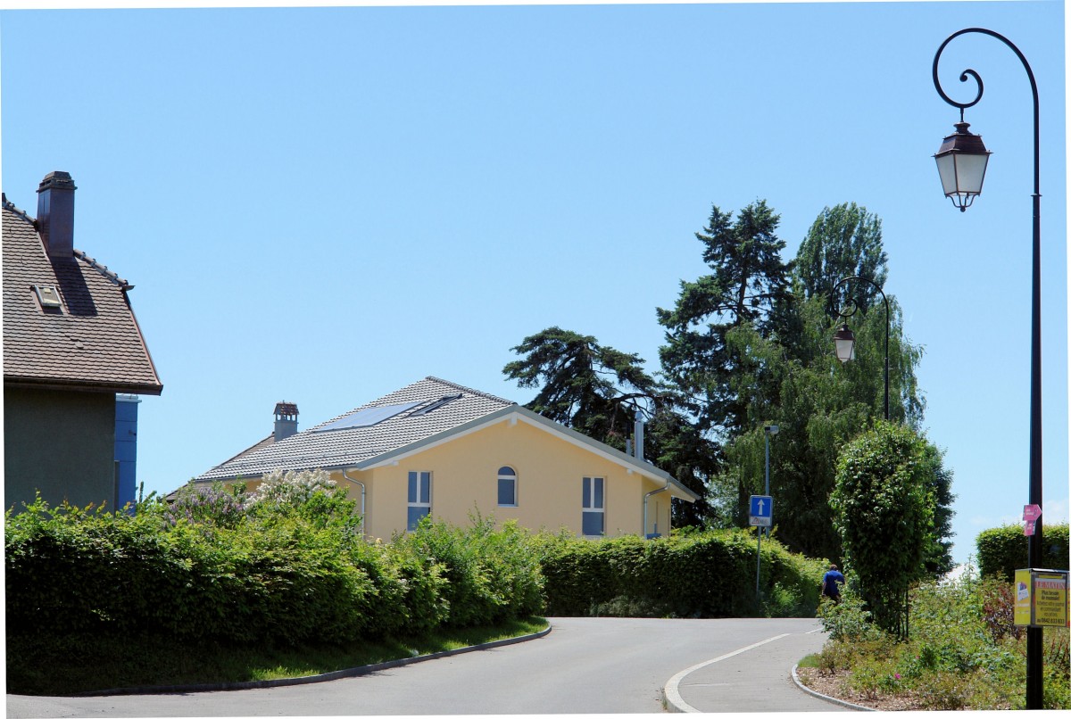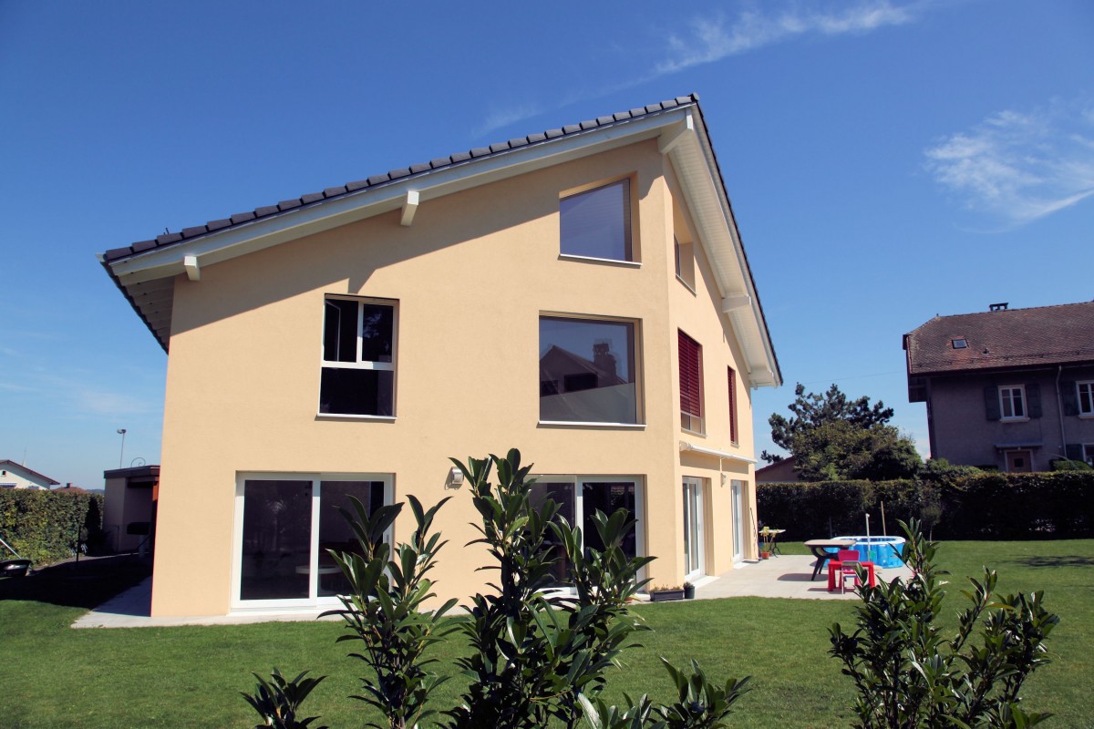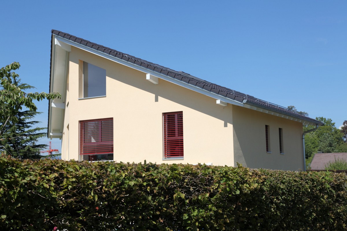 Sur une parcelle triangulaire, la maison de forme pentagonale avec un faîte incliné, augmente la surface de la façade côté jardin de 100 %.