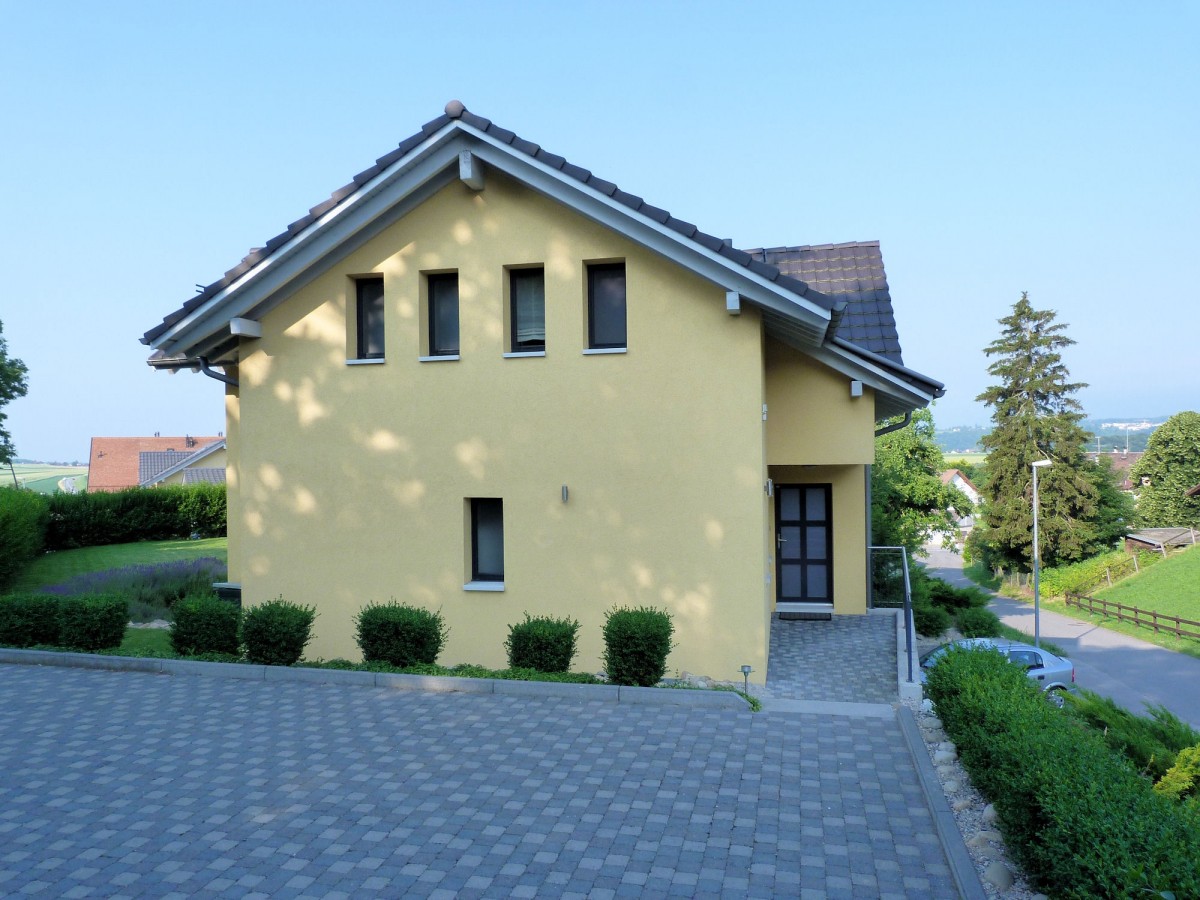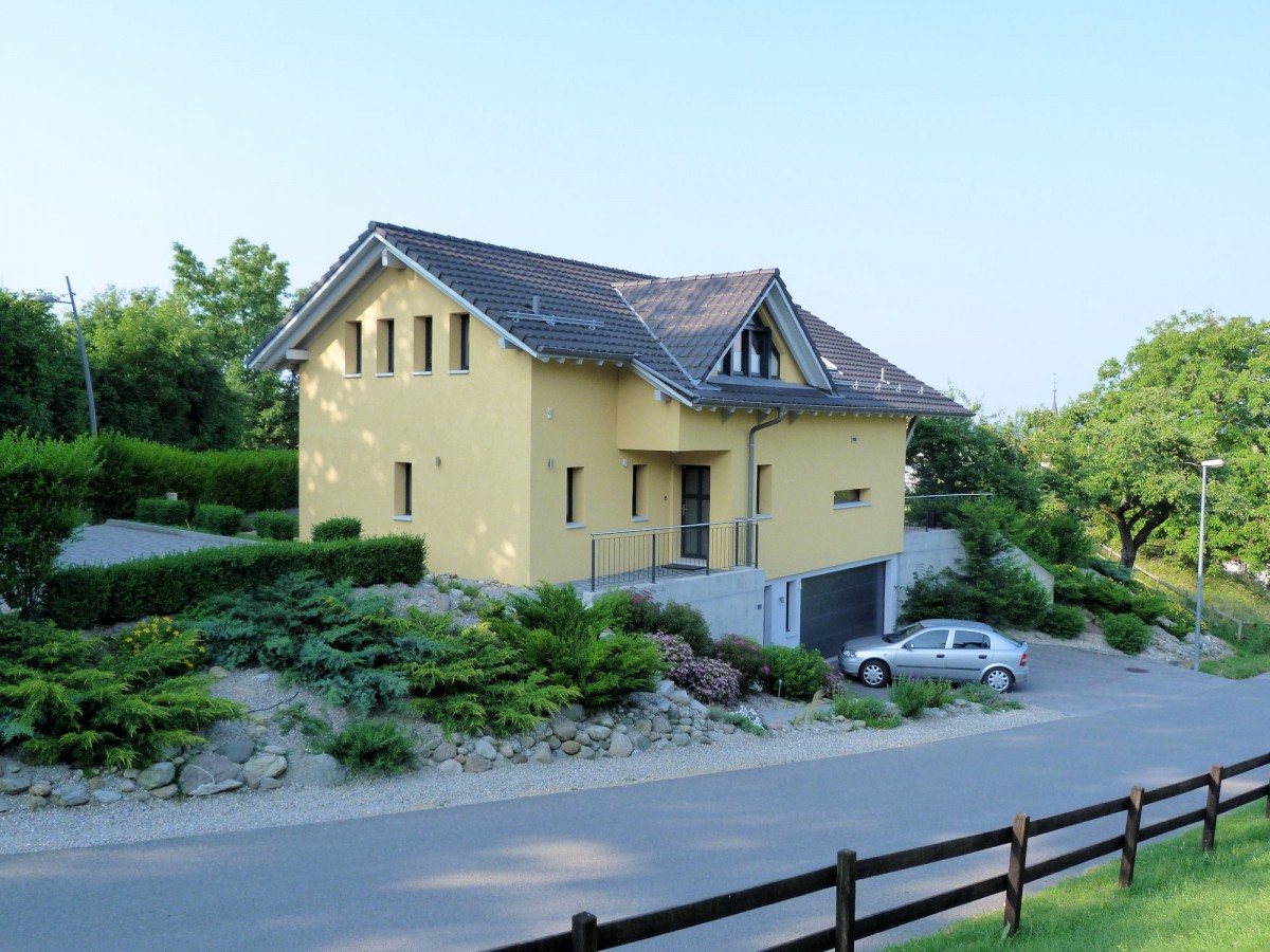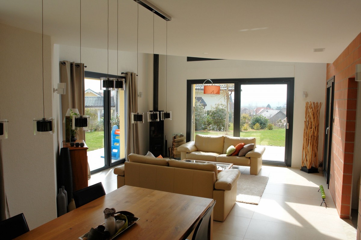 Un double accès, depuis la route en contre-bas et depuis la pointe du triangle au nord-est et nord -ouest reportent les nuisances sur l'arrière de la parcelle et valorisent la zone de verdure et de détente au sud.