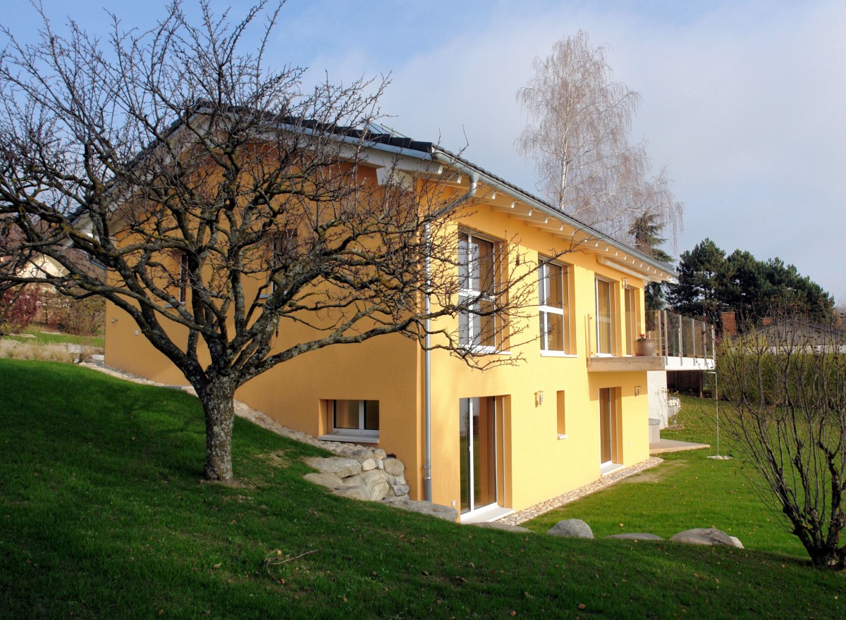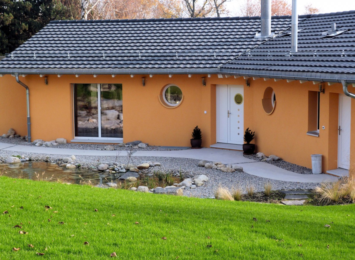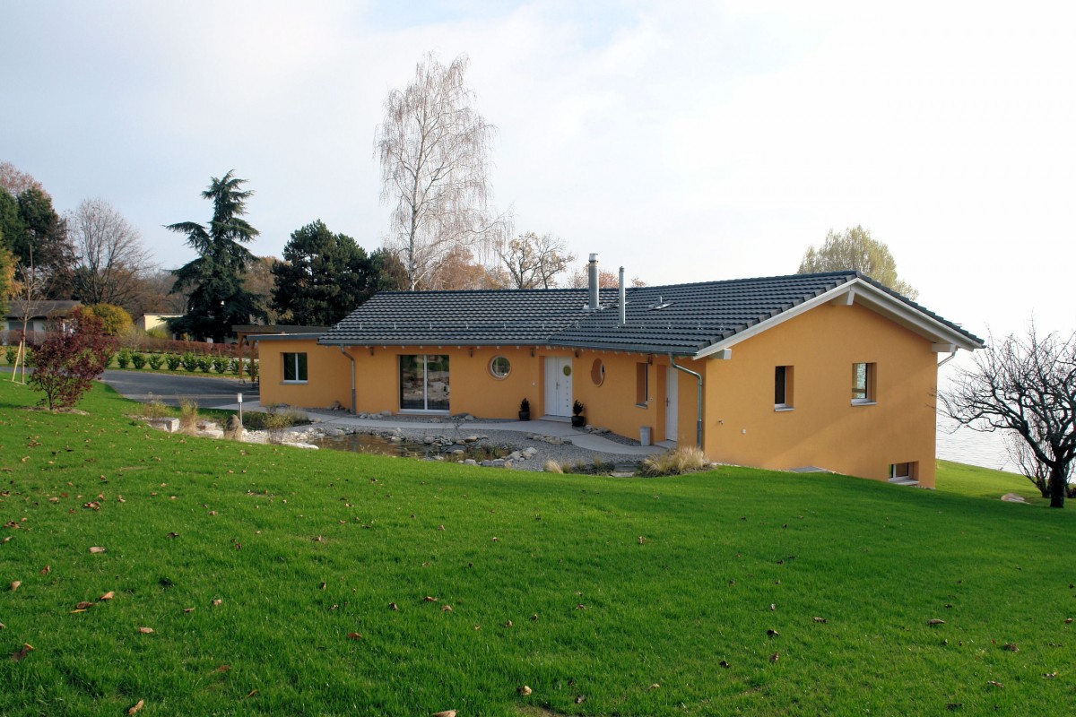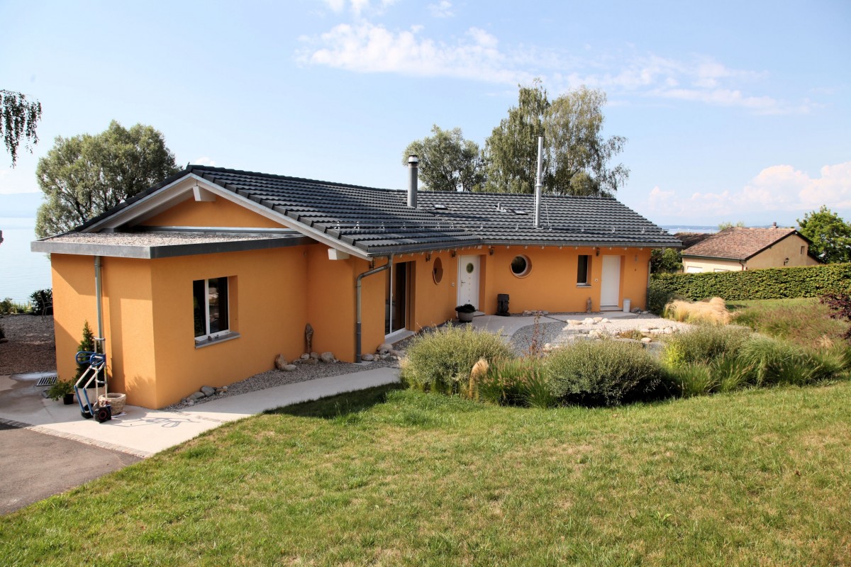 Les choix de la structure en ossature bois, de matériaux naturels, de toilettes à compost et d'un chauffage par PAC et solaire à accumulation sont une volonté de respect de l'environnement.